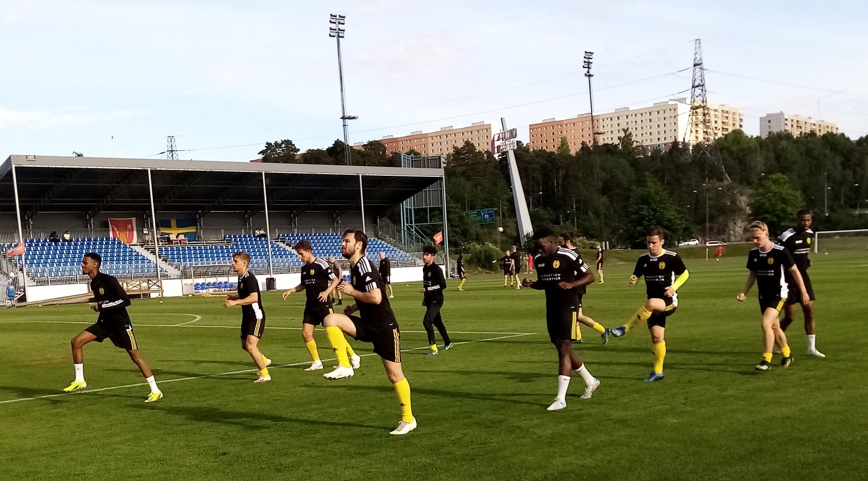 2021 och säsongen inleds i juni. I fjärde omgången, den 24 juni, kommer första förlusten, 0-1 mot Arameisk-Syrianska på Brunna. Uppvärmning, Abiel Sequar främst i vänstra ledet, Shaun Lomas i det högra.